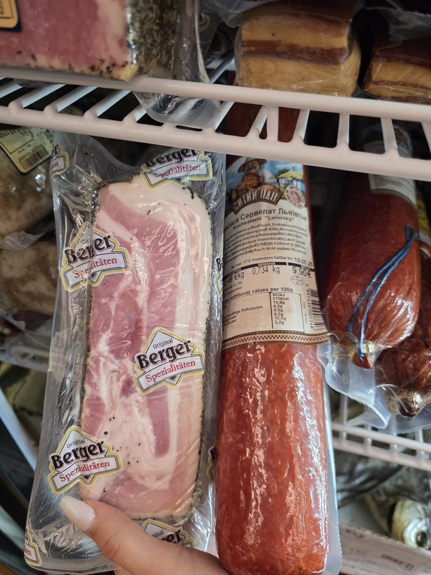 • Ukrainische Spezialitäten wie Konfekt, Teigtaschen, Salate, Saucen, eingelegtes Gemüse, Suppen & Wurst